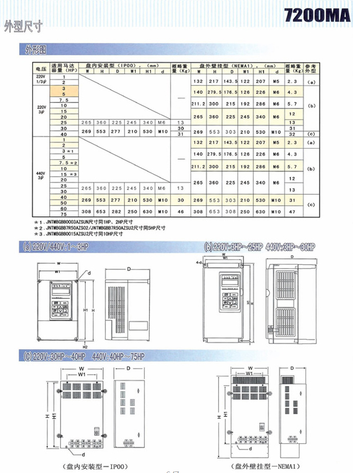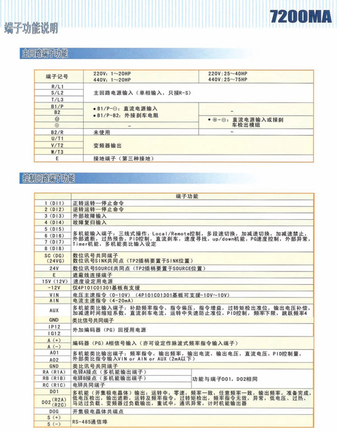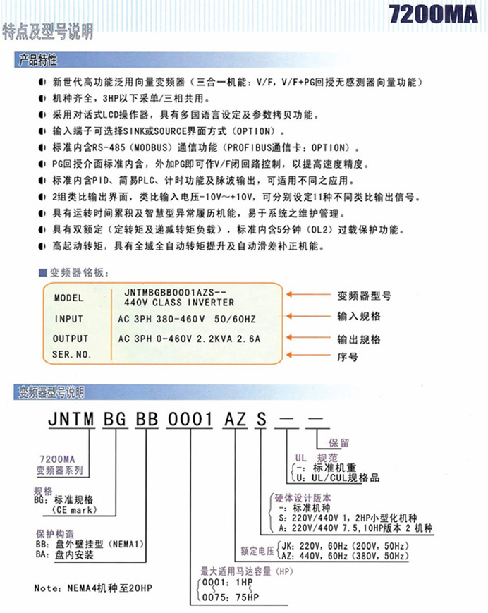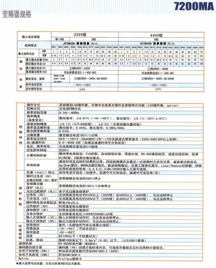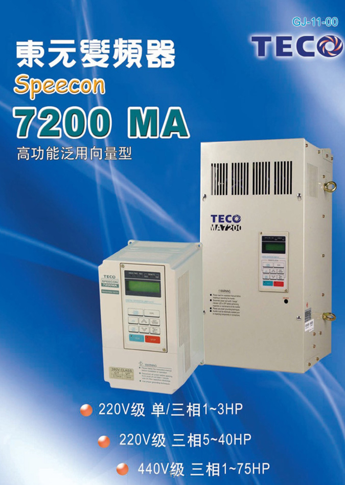 TECO東元變頻器7200MA1、東元變頻器7200MA特色:高功能泛用向量型 |