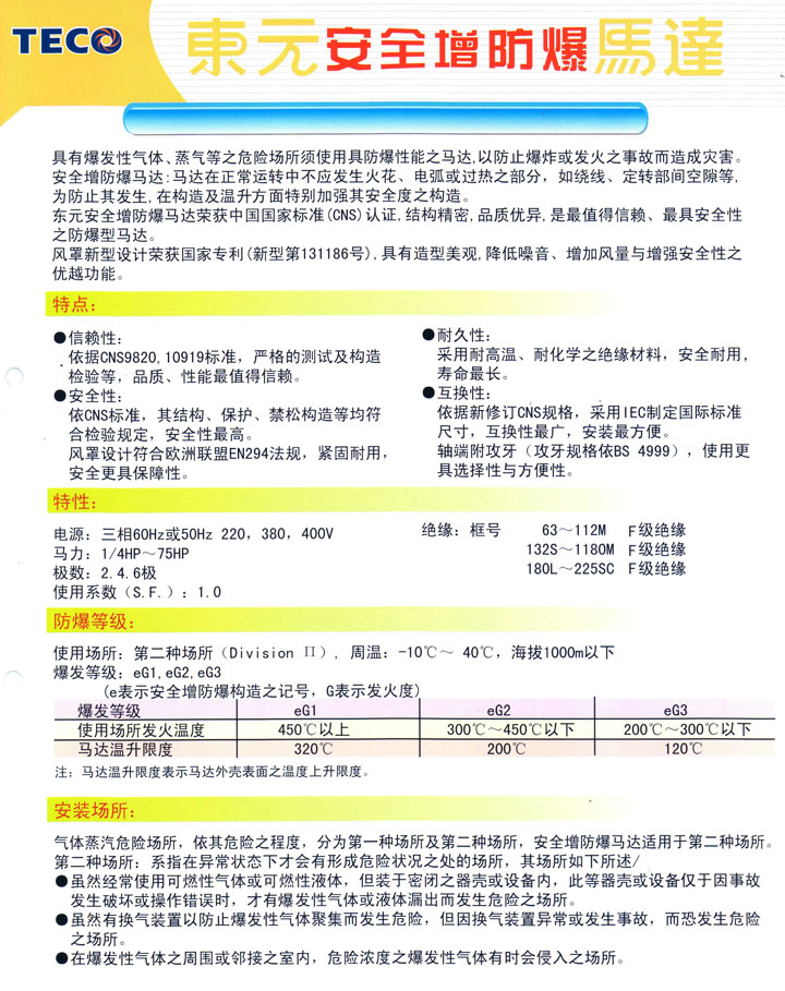 您當(dāng)前的位置:首頁(yè) > 產(chǎn)品中心 > 東元防爆電機(jī)馬達(dá)TECO > TECO東元防爆電機(jī)0.37KW