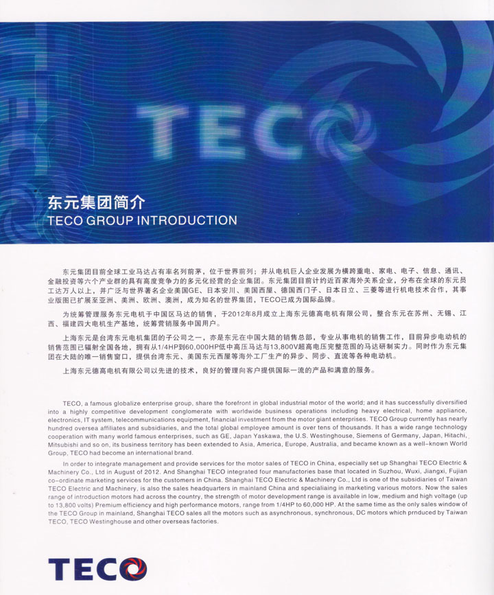 東元電機(jī)馬達(dá)系列臺(tái)灣TECO