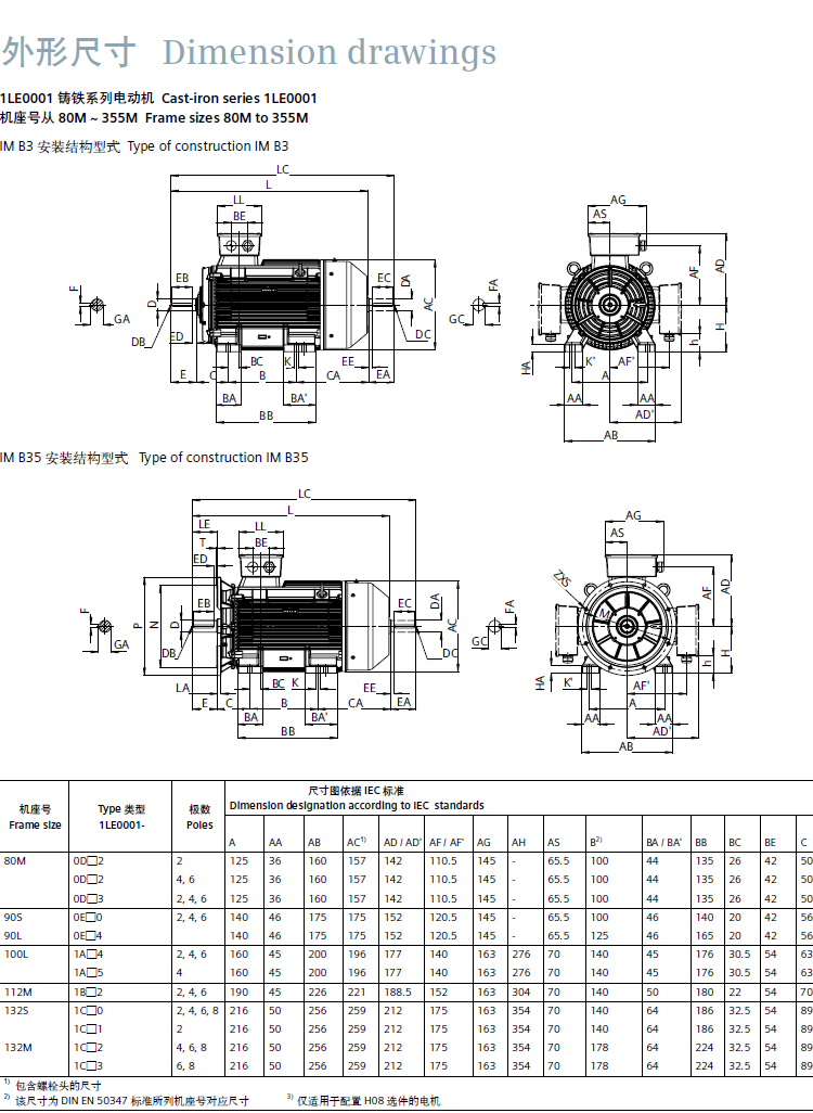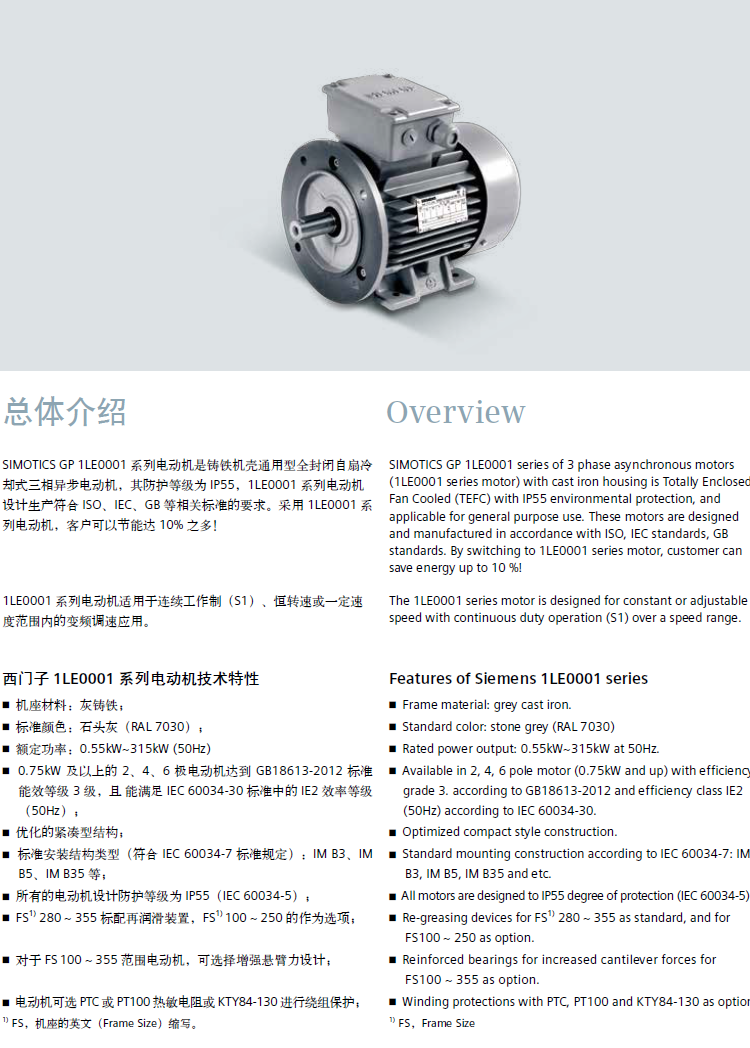 西門子三相異步電動機1LE0001臥立式4極馬達